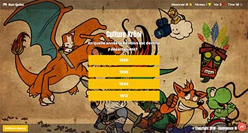 - Un logo, une musique de fond, sons sur réponses, partages sociaux (AddThis)